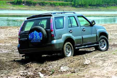 駿馳并沒有在懸架方面有更大的改進,還是沿用原來皮卡上面的結構,前懸架采用的是雙橫臂懸架,后面則是簡單的鋼板彈簧,這種懸架結構有很強的通過能力和可靠性,但是作為一款SUV,在穩定和舒適性能方面顯然不能讓人滿意。最先上市的駿馳只有兩驅版本,配備了寬大的225/75 R15輪胎,以彌補其越野能力的不足。