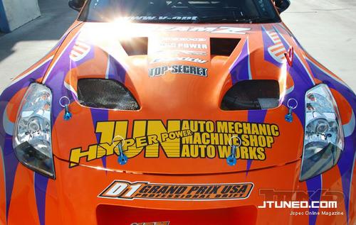 Option,JUN和Top Secret一手打造的極速Stream Z33。Single Greddy T88 38GK超大渦輪增壓,V-mount Greddy Intercooler,HKS F-con V Pro ECU,ORC離合器,Cusco LSD。 別的也不大清楚了,不過看看車后面背的“大包袱”,應(yīng)該知道跑零四的話絕對不是開玩笑。