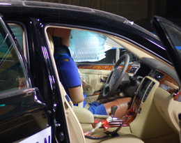 由于此類轎車首寬度和制造車本所限,不但沒有足夠的側面緩沖區域,亦沒有側面氣囊或氣簾來加以保護。撞擊后,假人的肋部與車輛門板以及扶手發生了非常明顯的接觸,并留下了許多涂料在上面。可以想見這勢必對思迪側面碰撞中的成績造成一些影響。更多……