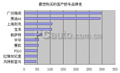 最喜歡的國產中檔轎車,奧迪A6和廣本雅閣排到了前兩位,品牌效應深入人心。
